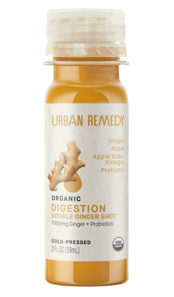 Certified organic super ginger shot with apple, probiotics, and apple cider vinegar.
